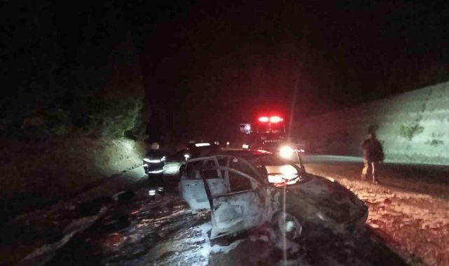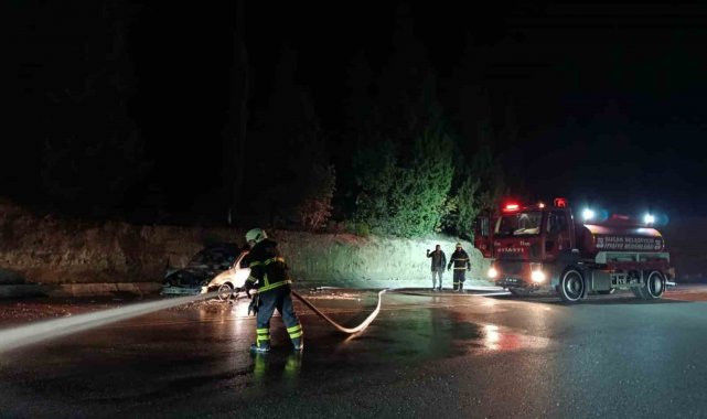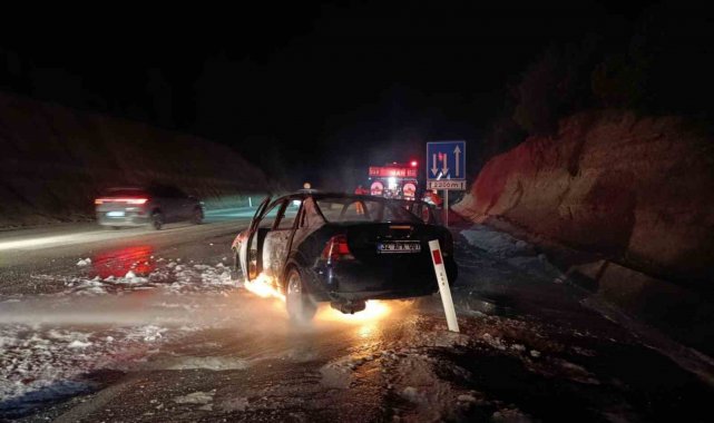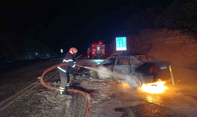 Burdur'da seyir halindeyken yanan otomobil kullanılmaz hale geldi