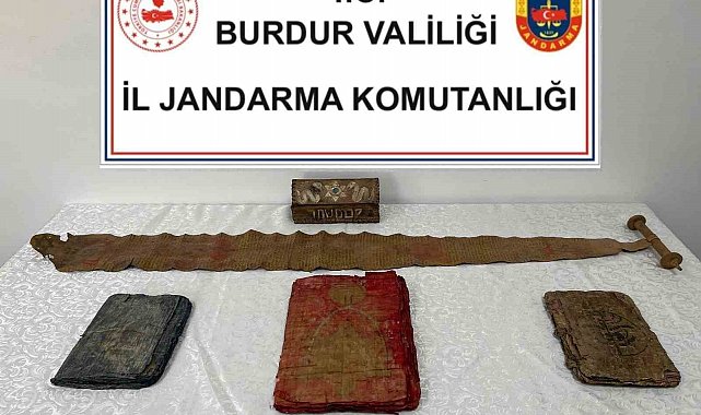 Burdur'un Bucak ilçesinde jandarma ekiplerinin Kültür ve Tabiat Varlıkları mirasının korunmasına yönelik çalışmaları neticesinde 3 adet el yapımı kitap ve 1 adet muhtelif tarihi eser ele geçirildi.