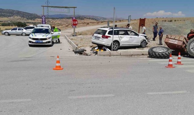 Burdur'da traktör ile otomobil çarpıştı: 1'i ağır 6 yaralı
