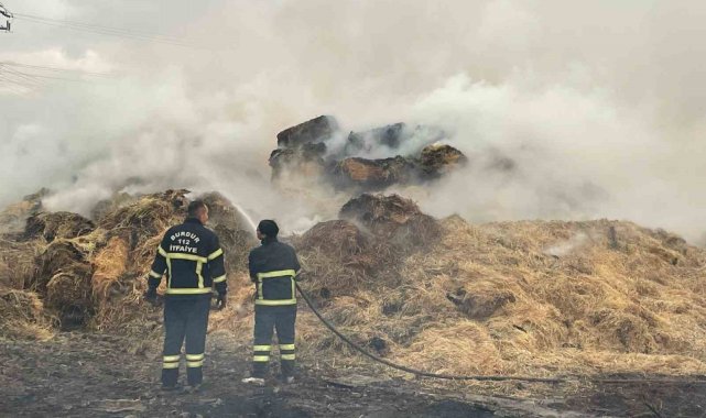 Burdur'da çıkan yangında yaklaşık 2 bin saman balyası yandı.