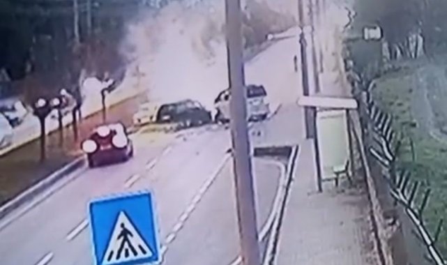 Olay anına dair güvenlik kamerası ortaya çıktı. Görüntülülerde; otomobilin karşıya geçmesi ve araçlara çarpması yer aldı.