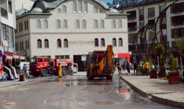 Günün aydınlanması ile birlikte ekipler caddelerde temizlik çalışması yapıp tıkanmış kanalizasyon hatlarını açmak için yoğun çaba sarf etti.