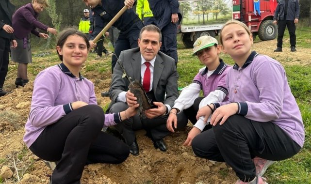 Burhaniye'de Kaymakam Memiş, öğrencilerle fidan dikimi yaptı