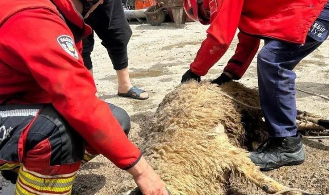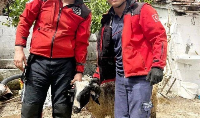 Burhaniye ilçesinde, kuyuya düşen kuzuyu itfaiye kurtardı.