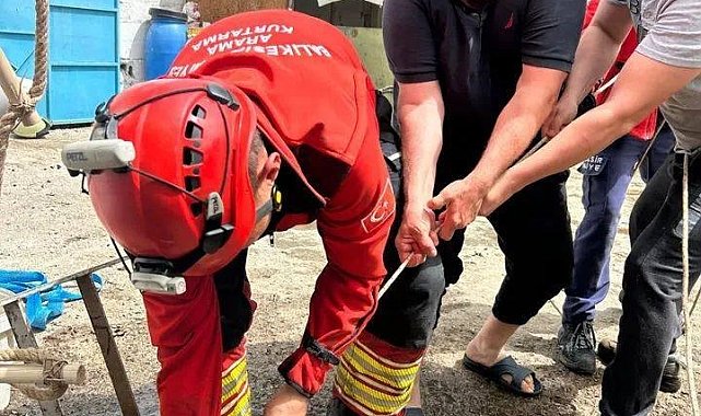 Burhaniye'de kuyudan kuzu kurtarma operasyonu