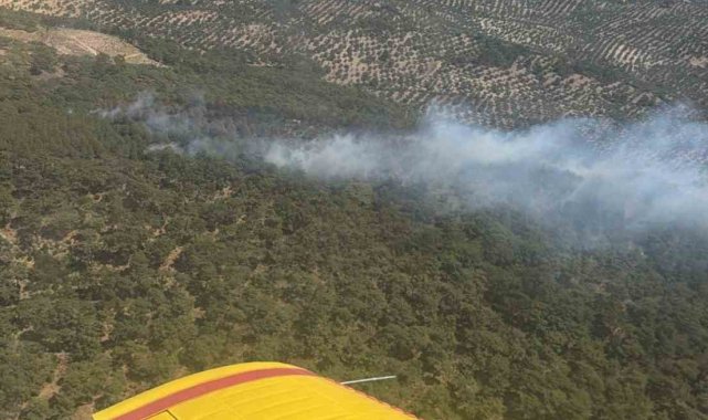 Burhaniye'de orman yangınına havadan ve karadan müdahale ediliyor