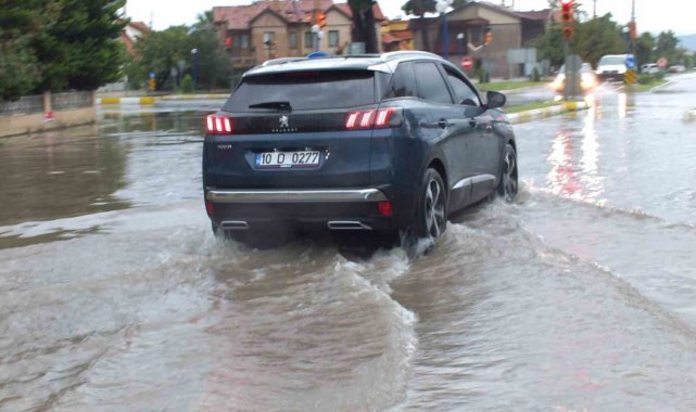Burhaniye'de sağanak yağış sokakları göle çevirdi