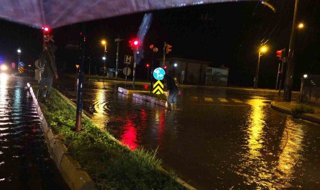 Burhaniye'de sağanak yağış yolları göle çevirdi