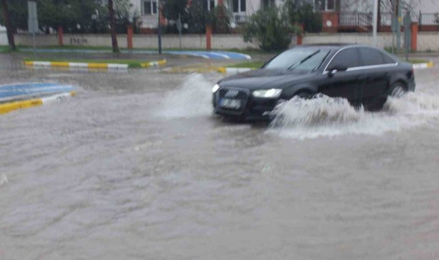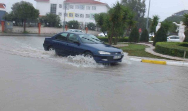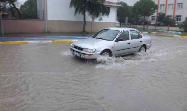 Burhaniye de sağanak yağmur yolları göle çevirdi