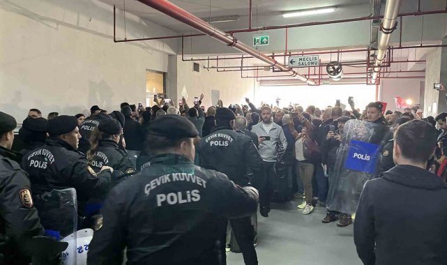 Bursa Büyükşehir Belediye Başkanı Mustafa Bozbey'in tutuklanması ve İçişleri Bakanlığı tarafından görevden uzaklaştırılmasının ardından bugünkü mecliste yeni başkanvekili seçilecek. Ancak saat 11'de yapılacak seçim öncesi belediye binasında olaylar çıktı. Polis yoğun güvenlik tedbiri alırken, meclis üyeleri haricinde kimsenin içeriye girmesine izin verilmedi. Meclis toplantısını takip etmek isteyen 200 kişilik CHP'li grup bariyerleri aşıp camları
