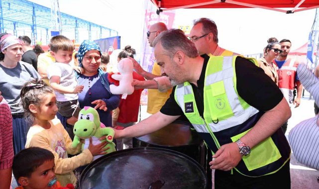 Hatay temasları çerçevesinde 3 öğün yemek ihtiyaçları Bursa Büyükşehir Belediyesi tarafından karşılanan Konya Büyükşehir Belediyesi'nin kurduğu konteyner kenti de ziyaret eden Başkan Aktaş, sohbet ettiği afetzedelere yemek dağıttı.