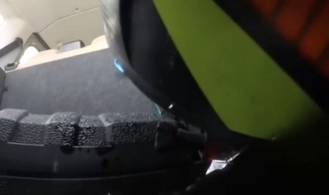 Kaza, merkez Osmangazi ilçesi Bursa-Yalova Otoyolu'nda meydana geldi. Saatte 113 kilometre hızla giden motosiklet, önünde duran hafif ticari araca çarptı. Kazada motosiklet sürücüsü, başını çarparak kırdığı aracın arka camından içeriye girdi. Belden yukarısı araç içinde kalan sürücünün kolları kırılırken, kaza kask kamerasına yansıdı.