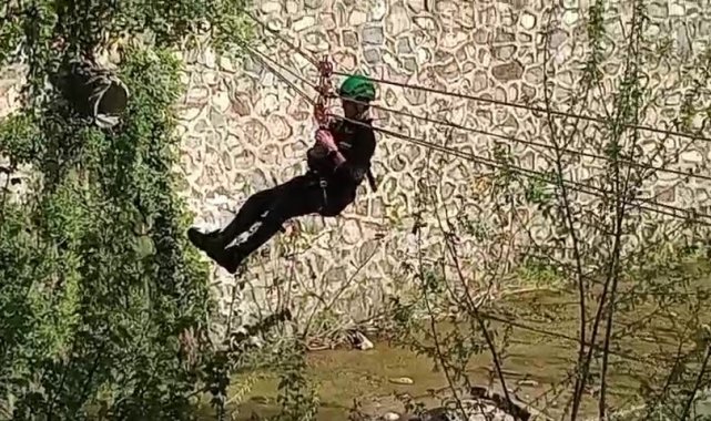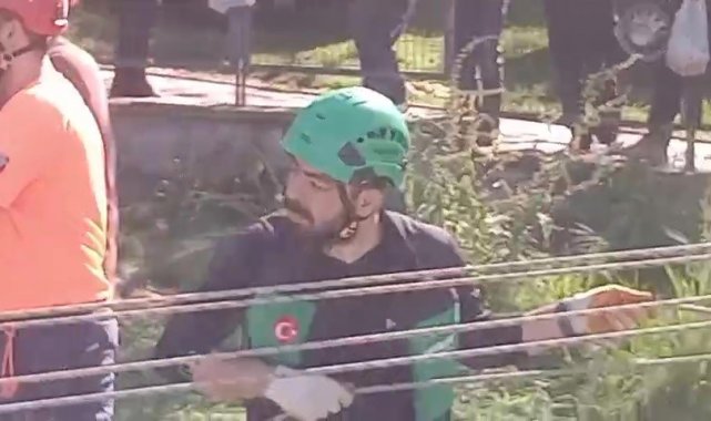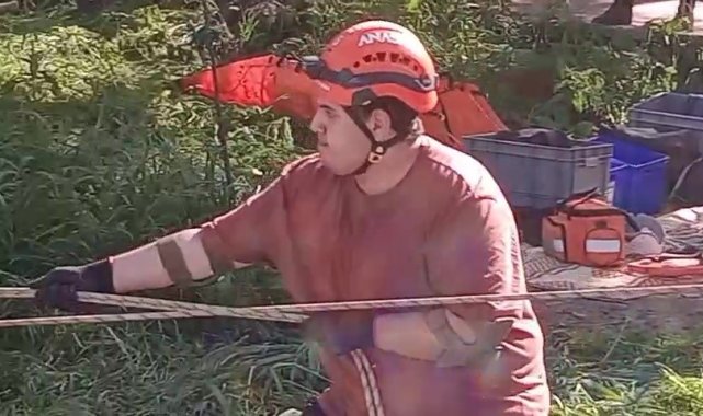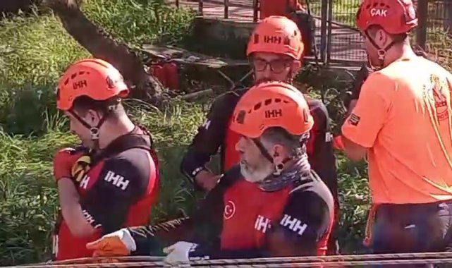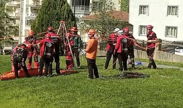 Bursa'da gerçekleştirilen tatbikatta ekipler, senaryo gereği dere yatağındaki yaralıları halatlarla kurtardı.