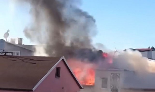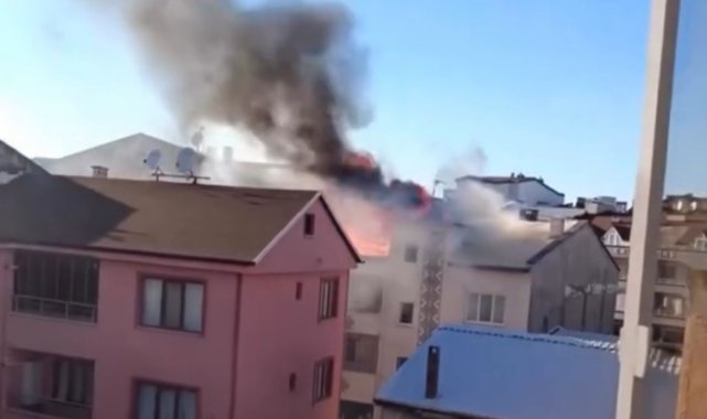 Bursa'da 3 katlı binanın çatısı alev alev yandı