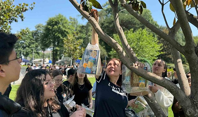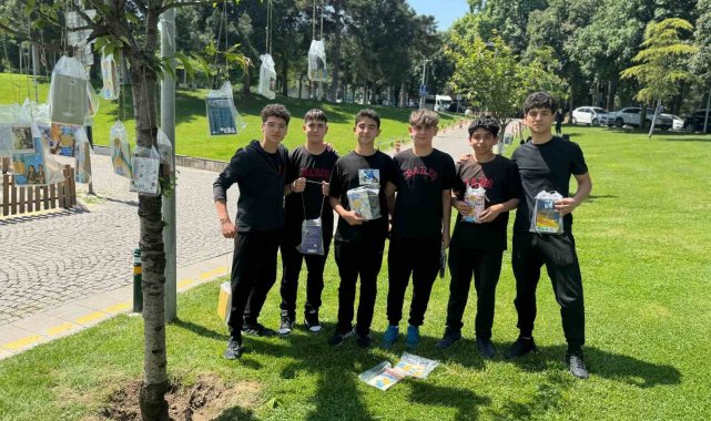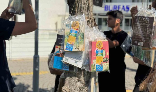 Bursa Kent Konseyi'nin kitap okumayı yaygınlaştırmak amacıyla başlattığı 'Okuduğun kitabı getir, ağaca dönüşsün' projesini kapsamında Merinos Parkı'ndaki ağaçlara kitaplar asıldı.