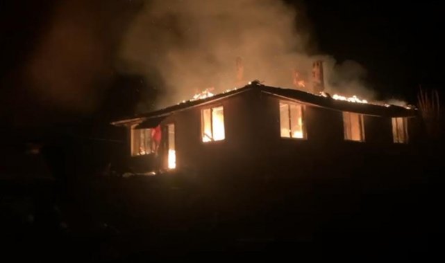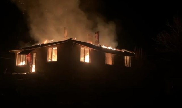 Bursa'da alevli gece...Köy evi alevlere teslim oldu