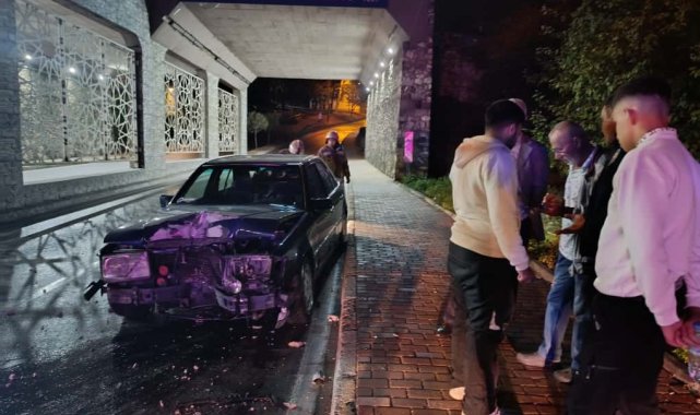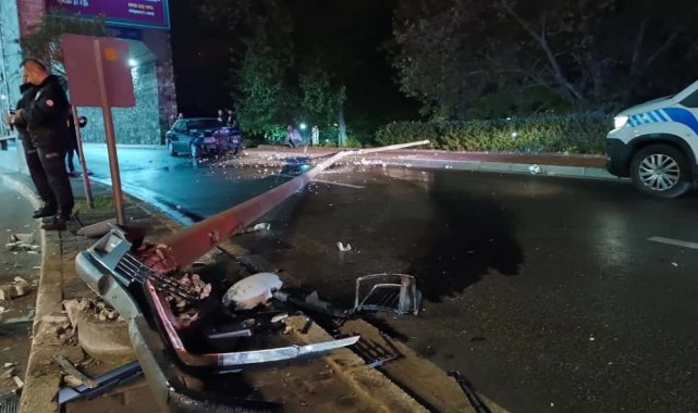 Bursa'da alkollü Mercedes araç sürücüsü, elektrik direğine çarpıp olay yerinden kaçtı