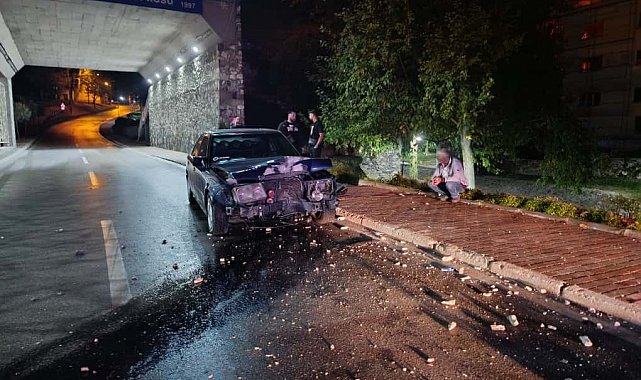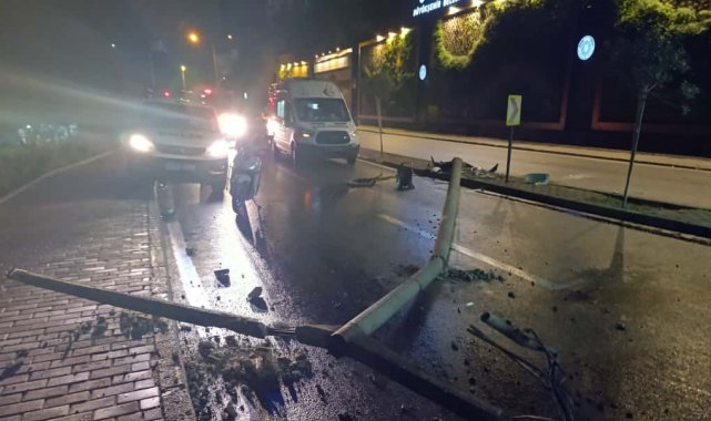 Bursa'da meydana gelen kazada otomobil elektrik direğini devirip karşı yola savruldu. Olaydan sonra kaçan sürücü, babasının çağrısına rağmen ehliyetinin alınacağını söyleyerek kaza yerine gitmedi.