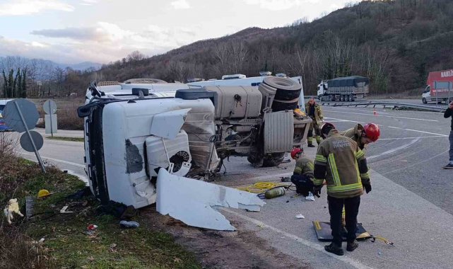 Bursa'da beton tankeri devrildi: 1 ölü