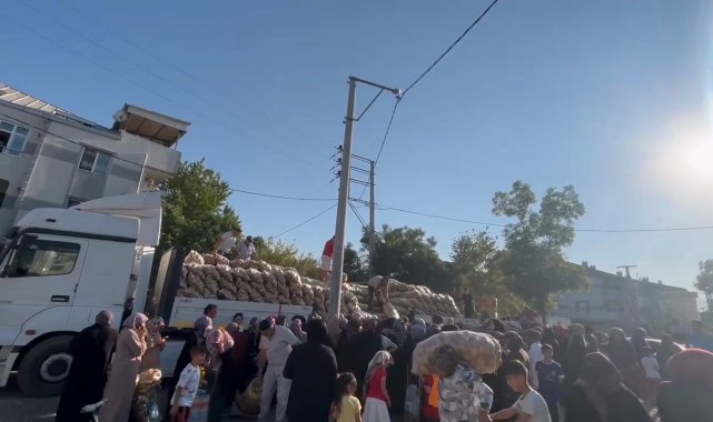 Bursa'nın İnegöl ilçesinde bir hayırsever, ihtiyaç sahiplerine destek olmak amacıyla 1 tır dolusu patatesi ücretsiz dağıttı.