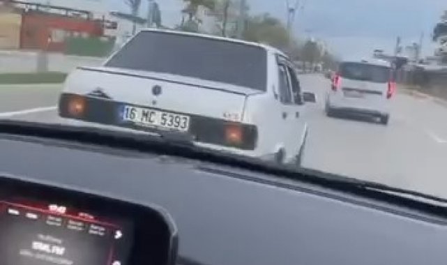 Olay, Bursa'da Nilüfer ilçesi Çalı Yolu üzerinde yaşandı. İddiaya göre trafikte seyir halinde olan iki sürücü tartıştı. 16 MC 5393 plakalı otomobilin sürücüsü ise tartıştığı sürücünün önünü keserek ilerledi. Trafiği de tehlikeye atan sürücünün görüntüsü arkadaki sürücü tarafından saniye saniye kaydedildi.