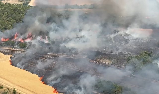 Bursa'nın Yenişehir ilçesi Demirboğa Mahallesindeki kırsa alanda bulunan buğday tarlalarından yükselen alevler, gökyüzünü dumanla kapladı. İhbar üzerine olay yerine Bursa Orman Bölge Müdürlüğü ekipleri hareket etti. 41 personel, 3 helikopter, 6 arazöz ve 2 su tankeri ile müdahale ederken, tarlanın ortasında kalan bir biçerdöver ise alevlere teslim oldu.