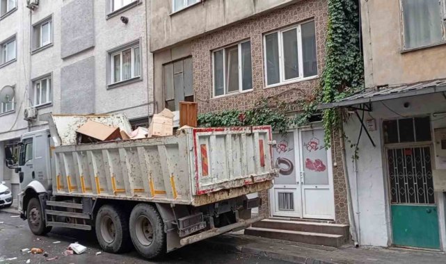 Kadının temizlik sırasında evde olmadığı öğrenilirken, ekipler dairelerden yaklaşık 1,5 kamyon dolusu çöp çıkardı. Kullanılamaz durumdaki eşyalar camlardan doğrudan çöp kamyonuna atıldı.