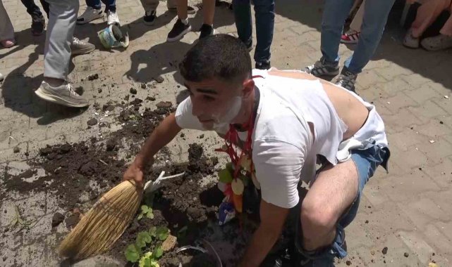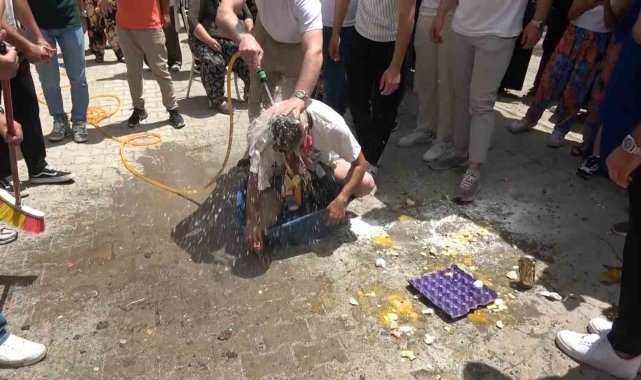 Bekar arkadaşlarının düğününü sabırsızlıkla beklediğini belirten damat Onur Sayar, "Bu bizim yüzyıllardan beri süregelen bir geleneğimiz. Biz bunu her düğünde yaparız. Arkadaşlarımızdan da Allah razı olsun. Bizi bu mutlu günümüzde yalnız bırakmadılar, hep beraber yedik, içtik. Onlara da çok teşekkür ederim. Adetimizde yumurta kırma, un serpme, saksı kırma, toprak süpürme gibi etkinliklerimiz var. Bizler de köyün gençleri olarak bu geleneği devam ettiriyoruz. Her düğünde bu adetler oluyor. Bekar arkadaşlarımız evlendiği taktirde beterini de kendilerine yapacağım" dedi.