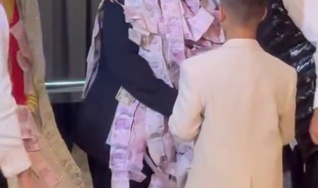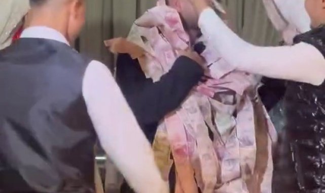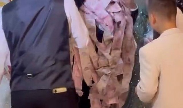 Bursa'da düzenlenen bir düğünde ilginç görüntüler yaşandı. Beyda ve Enes çiftinin mutlu gününde takı merasiminde salona getirilen metrelerce uzayan para şeridi davetlilerin dikkatini çekti. Davetliler arasında şaşkın bakışlar olurken, bazı misafirler telefonlarına sarılarak o anları kayda aldı. 50 metre boyunca uzanan para şeridinin damadın üzerine tek tek dolanması renkli görüntülere sahne oldu.