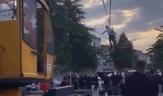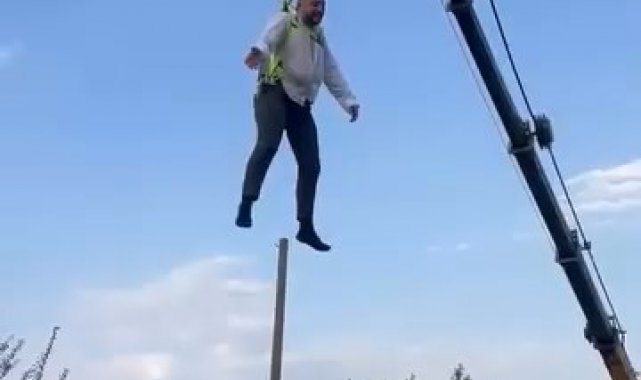 Bursa'nın Yenişehir ilçesinde ilginç gelenekler devam ediyor. Düğün evine girmeden damada yapılan türlü türlü işkencelere, bir yenisi daha eklendi. Damadın arkadaşları kiraladıkları vinç ile damadı iple sallandırdı. Arkadaşları damadın altında çiftetelli oynarken zaman zamanda ayaklarından tutmaya çalıştı. İlginç anlar ise cep telefon kamerasına yansıdı.