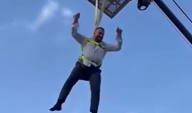 Bursa'da düğün öncesi damada görülmemiş işkence kayda alındı. Vinç ile havaya kaldırdıkları damadın altında arkadaşları göbek attı.