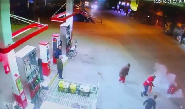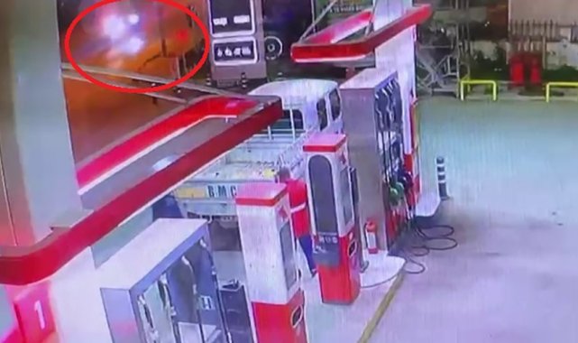 Korku dolu anlar, akaryakıt istasyonunun güvenlik kamerasına saniye saniye yansıdı.