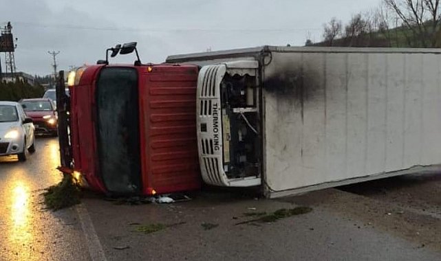Kaza, Bursa-Ankara karayolu İnegöl girişinde meydana geldi. Edinilen bilgiye göre, Bursa'dan İnegöl istikametine seyir halinde olan Hasan Ş. (52) yönetimindeki 16 J 9995 plakalı kamyon, sürücüsünün direksiyon hakimiyetini kaybetmesi sonucu yol kenarında bulunan bir içecek fabrikasının duvarına çarptı. Çarpmanın etkisiyle kamyon devrildi.