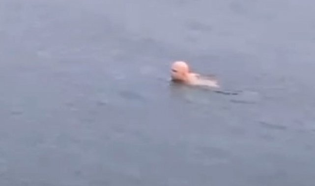 Bursa'nın Mudanya ilçesinde hava sıcaklığının sıfırın altında seyrettiği sabah saatlerinde bir vatandaşın denize girerek yüzmesi, görenleri hayrete düşürdü.