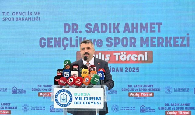 Yıldırım'da sporla güçlenen, sanatla incelen, kitapla büyüyen bir gençlik tasavvur ettiklerini belirten Başkan Yılmaz, "Göreve geldiğimizden bugüne 336 bin insanımıza spor hizmeti sunduk. 4 bin 313 lisanslı sporcumuz 4 bin 316 madalya, 210 kupa kazandı. 2 bin 787 özel çocuğa ve ailesine destek olurken, kadın spor merkezlerimizde 75 bin 233 kadın istifade etti. Dr. Sadık Ahmet Gençlik ve Spor Merkezi yalnızca bugünün değil, yarının Yıldırım'ı için bir yatırım. Burada bir bina değil; birlikte düşünen, birlikte üreten, birlikte yaşayan bir şehir idealinin somut karşılığını inşa ettik. Spor yapan her çocuk, kitap okuyan her genç, birlikte üreten her mahalleli Sadık Ahmet'in izini sürdükçe; bu eser anlamını bulacak. Bu vesileyle bu merkezimizin ilçemize kazandırılmasında büyük desteği olan Bakanımıza da teşekkür ediyorum" diye konuştu.