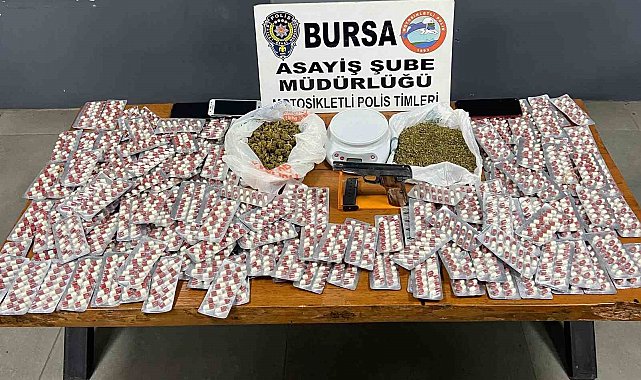 Bursa'da polis ekiplerinin yaptığı denetimde "dur" ihtarına uymayarak kaçan şüpheli, yapılan kamera ve saha çalışmaları sonucu yakalandı. Şüphelinin evinde yapılan aramada ruhsatsız tabanca, uyuşturucu madde ve hassas terazi ele geçirildi.