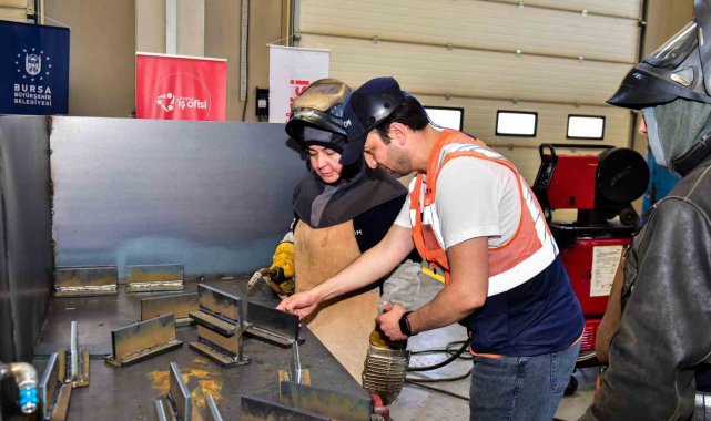 Bursa Büyükşehir Belediyesi tarafından düzenlenen 'Gazaltı kaynak eğitimi'ne katılan kadınlar, eğitimlerin ardından kaynak ustası olarak istihdam edilecek.
