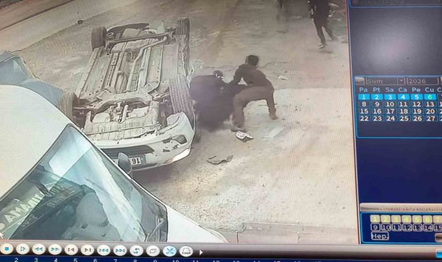 Çarpmanın etkisiyle ters dönen otomobilde sürücü A.B. ile yolcu konumunda bulunan öğrenciler S.B. (14), İ.Ş. (16), E.D. (15), B.A. (15), E.T. (16) ve M.D. (16) araçta sıkıştı.