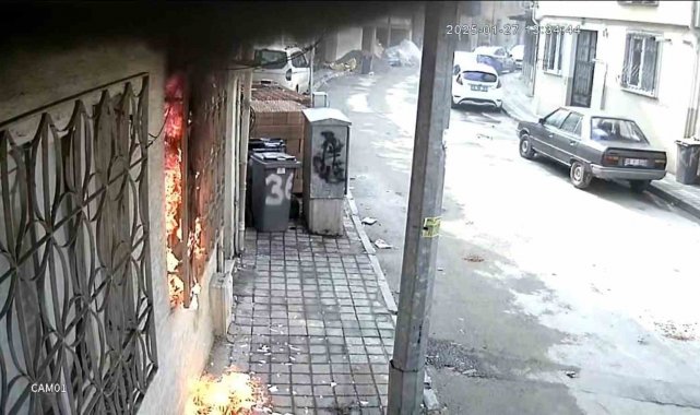 Şüphelinin Sinanbey Mahallesindeki bir evi benzin dökerek yaktığı güvenlik kamerasına saniye saniye yansıyan görüntüler ortaya çıktı.
