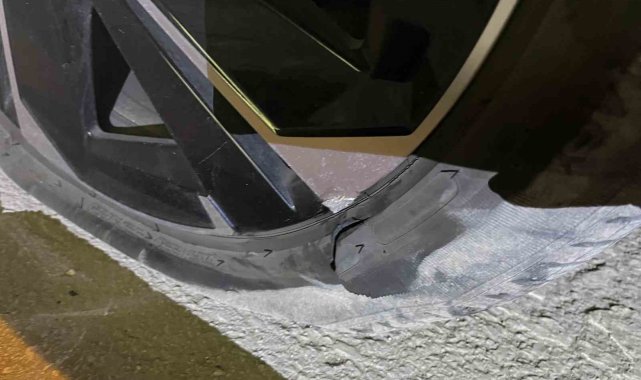 Bu sırada trafikte seyir halinde olan Fatih G. yönetimindeki otomobil, sürücünün manevra yapmasına rağmen demirin üzerinden geçti. Yaklaşık 100 metre sürüklenen demir parçası nedeniyle aracın sağ tarafındaki iki lastik parçalanırken, araç güçlükle durabildi.