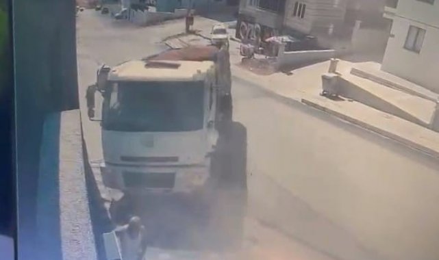 Kaza, saat 15.43'te Fatih Mahallesi Aşık Veysel Caddesi'nde meydana geldi. Yusuf K. (45) yönetimindeki 49 DC 275 plakalı kum yüklü kamyonun yokuş aşağı geri giderken freni patladı. Sürücünün kontrolünden çıkan araç hızla gitmeye başladı. Sürücü hızlanan araçtan atlarken, araç sitenin giriş duvarına çarparak devrildi. Araç devrildiği sırada kaldırımda bulunan bir vatandaş, kaçarak saniyelerle kurtuldu. Yaralı sürücü, kaza yerine sevk edilen embulansla İnegöl Devlet Hastanesine kaldırıldı. Kaza anı bir iş yerinin güvenlik kamerasına saniye saniye yansıdı.