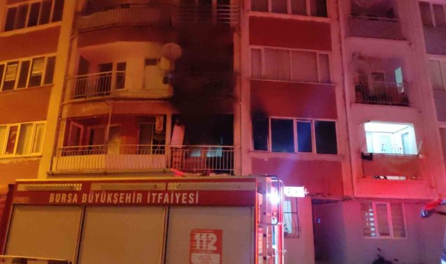 Bursa'da bir apartman dairesinde çıkan yangın paniğe neden oldu. Yangını fark eden dairedeki kadın, 2 çocuğunu da yanına alarak kendisini sokağa attı. Yükselen alevler nedeniyle apartmanda 5 kişi dumandan etkilendi.