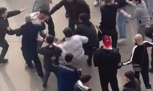 Bursa'da Korupark alışveriş merkezinin otoparkında birbirine giren gençler, herkese korku dolu anlar yaşattı.