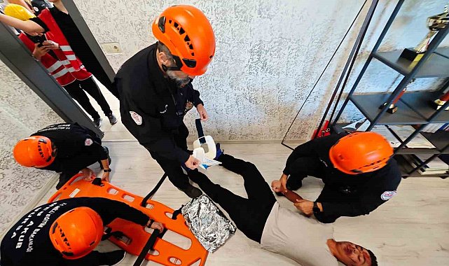 Atatürk Mesleki ve Teknik Anadolu Lisesi'nde öğrencilerin de katıldığı deprem ve yangın tatbikatı gerçeği aratmadı.