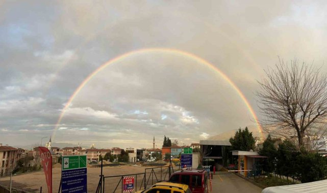 Bursa'da yağmurun ardından oluşan gökkuşağı, izleyenleri mest etti.