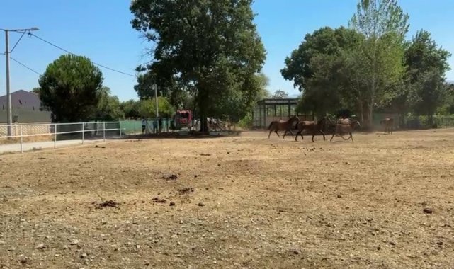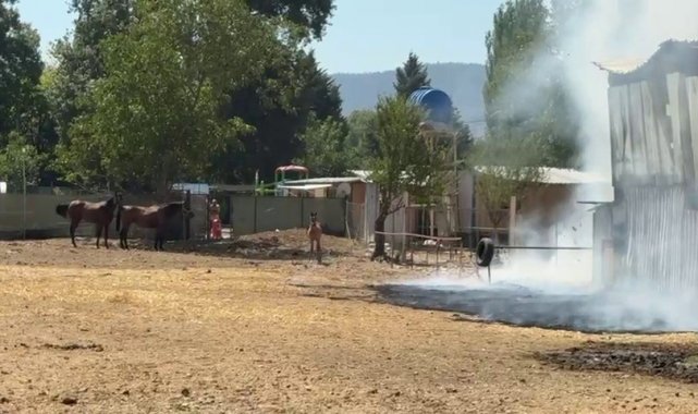 Ekiplerin müdahalesiyle yangın kontrol altına alınırken, içeride bulunan 1 at ile 2 keçi telef oldu. Diğer hayvanlar ise son anda kurtarıldı. Yangında büyük maddi zarar meydana gelirken, o anlar kameraya yansıdı.