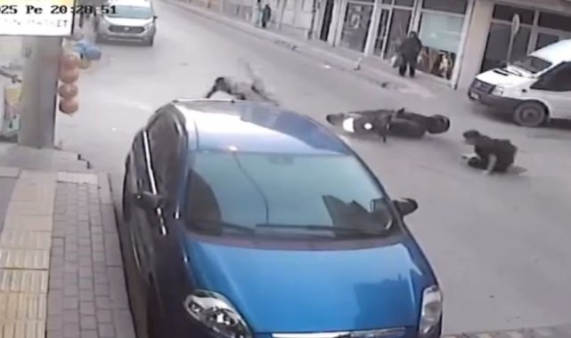 O anlar, çevrede bulunan bir iş yerinin güvenlik kamerasına saniye saniye yansıdı. Görüntülerde iki motosikletin çarpışma anı ve çevredekilerin yardıma koştuğu anlar yer aldı.