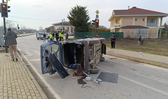 Kaza, saat 16.30 sıralarında Mahmudiye Mahallesi Ortaköy Yolu Caddesi ile Ahmet Türkel Çevre Yolu'nu birbirine bağlayan ışıklı kavşakta meydana geldi. Ortaköy'den İnegöl'e seyir halinde olan Necati K. (61) idaresindeki 16 APL 967 plakalı Dacia marka cip, Kamuran E. (34) idaresindeki 35 AR 2462 plakalı Peugeot marka hafif ticari araca yandan çarptı. Çarpmanın etkisiyle yön tabelası ve kaldırıma çarpan hafif ticari araç devrildi. Kazada sürücüler ile hafif ticari araçtaki yolcular Hamrusena K. (28) ve Seyfettin K. (58) yaralandı. Yaralılar kaza yerine sevk edilen ambulansla İnegöl Devlet Hastanesine kaldırıldı.