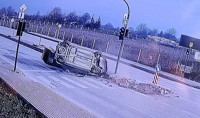 Bursa'nın İnegöl ilçesinde iki otomobilin çarpıştığı kazada 4 kişi yaralandı. Kaza anı bir iş yerinin güvenlik kamerasına saniye saniye yansıdı.