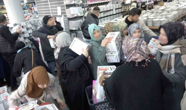 Mağazada 100 TL'den satılan çaydanlık, çerezlik ve birçok ev eşyasının uygun fiyatlarla satışa sunulması yoğunluğun artmasına neden oldu. Yüzlerce vatandaşın aynı anda içeri girmeye çalışmasıyla zaman zaman zor anlar yaşanırken, görevliler kalabalığı kontrol altına almaya çalıştı.